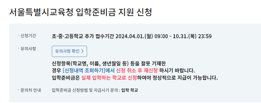 1. 서울 입학준비금 지원 신청 방법
