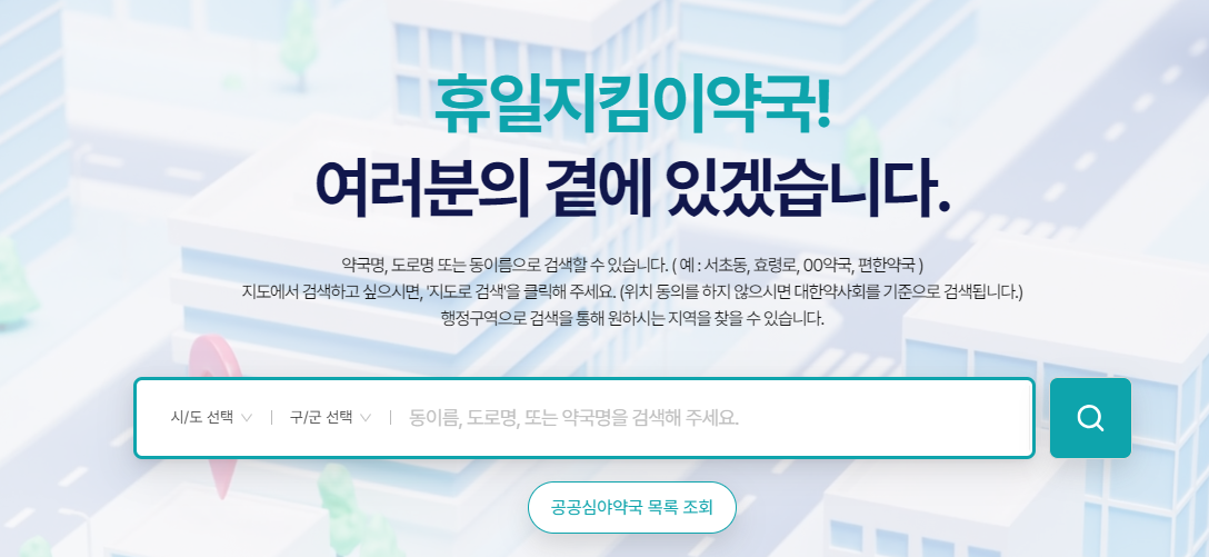 ✅ 먼저, 휴일지킴이 약국 홈페이지를 이용하여 근처에 있는 24시간 약국을 찾을 수 있습니다. 사이트에 접속한 후 원하는 지역명을 정확하게 입력하면 그 지역의 영업 중인 약국 목록을 확인할 수 있습니다.