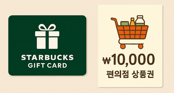 예) 스타벅스 기프티콘, 편의점 상품권, 올리브영 기프트카드, 다이소 등 (1~2만 원 정도)