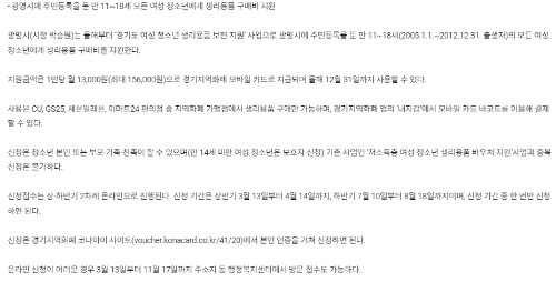 경기도 여성청소년 생리대 지원금 바우처 신청 대상 방법