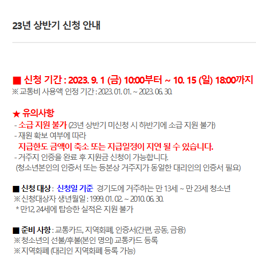 ※ 청소년 교통비 사용액 인정 기간 : 2023. 01. 01. ~ 2023. 06. 30